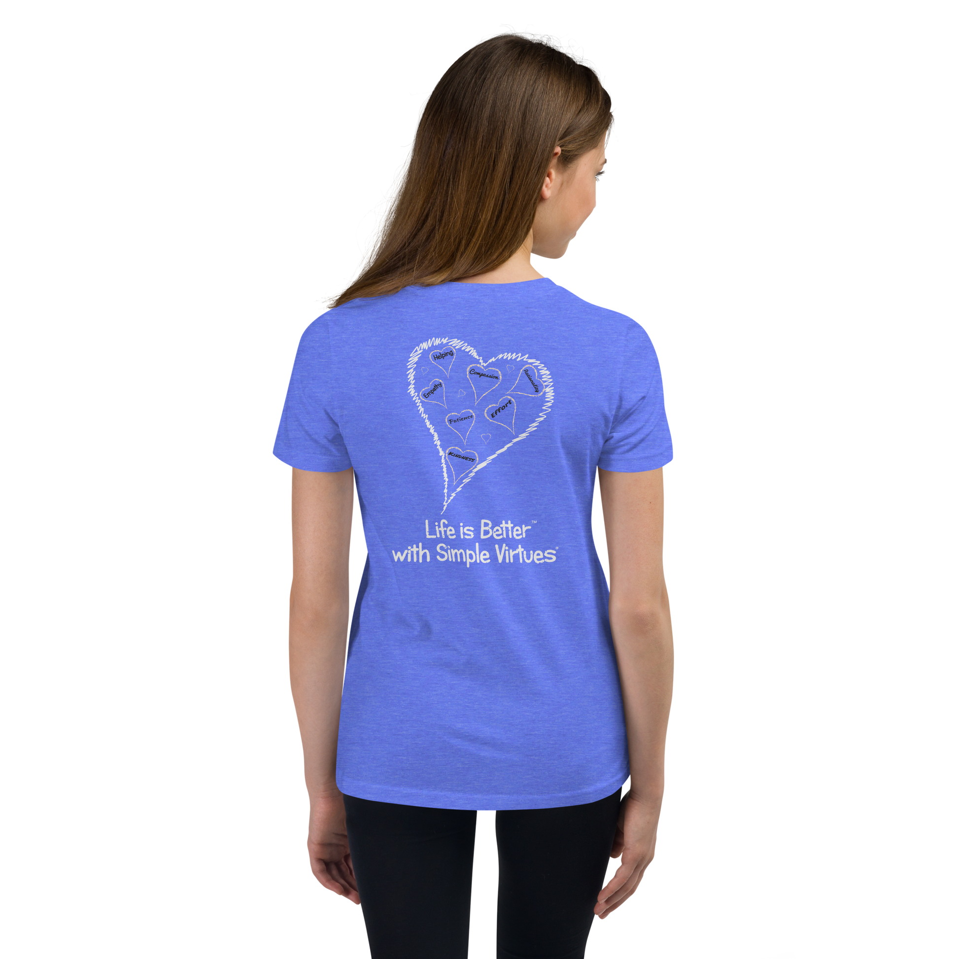 Heather Blue "Hearts Aloft" Youth Unisex Short Sleeve T-Shirt