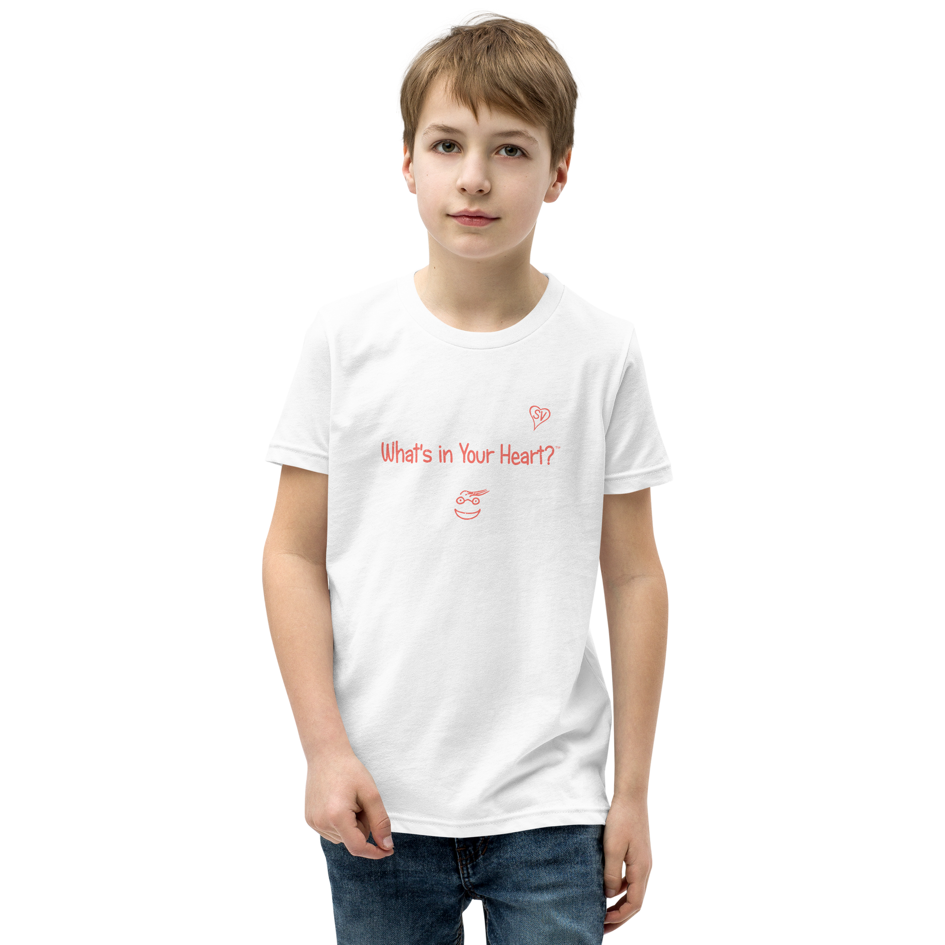 White "Peace Heart" Youth Unisex Short Sleeve T-Shirt
